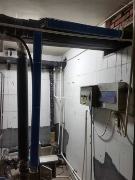 之前系統(tǒng)安裝的有軟化水設(shè)備,即傳統(tǒng)的樹脂交換,但是存在出水量不夠、設(shè)備需要定期加鹽和更換樹脂、濃水無法排放等一系列難題。并且其熱水是供生產(chǎn)食品使用,還不能添加任何藥劑,在此難題無解的情況下,經(jīng)朋友推薦安裝了一套QYCT-19254掃頻除垢設(shè)備,4組線分別纏繞在空氣能進水管、板式換熱器二次進水管、太陽能進水管和補水管四條管線上。
