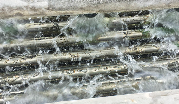 特高壓錦屏換流站安裝輕雨掃頻除垢設(shè)備后,盤管表面的垢層變薄,極二高擋水板結(jié)垢狀況得到改善,極二高格柵處結(jié)垢情況也得到改善。