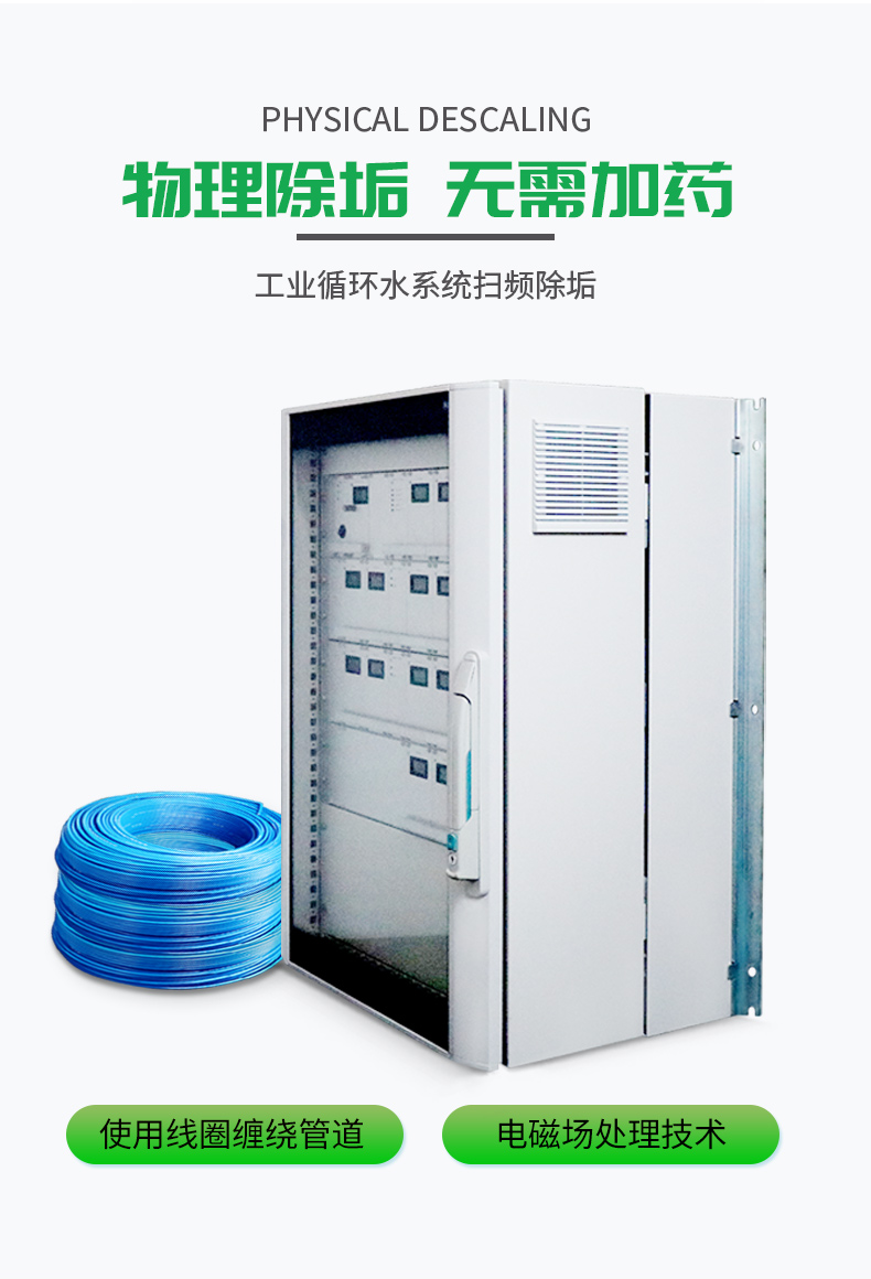 4. 輕雨掃頻電子除垢儀:這是一種常用的物理除垢阻垢設(shè)備,能夠通過電磁場(chǎng)對(duì)循環(huán)水進(jìn)行有效預(yù)處理,使設(shè)備內(nèi)壁的水垢自然脫落,并能保護(hù)設(shè)備不再容易產(chǎn)生結(jié)垢問題。