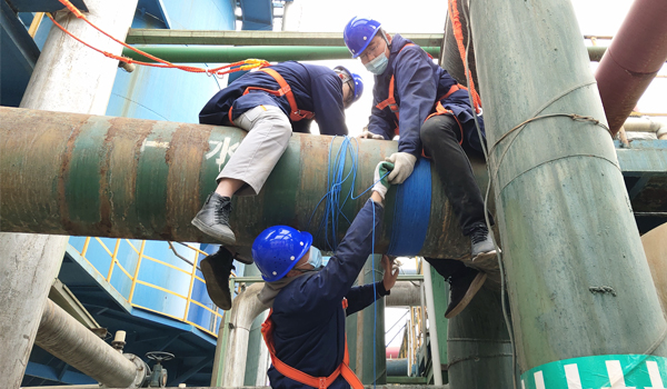 在龍蟒佰利聯廠區(qū)現場可以看到,掃頻電子除垢系統(tǒng)安裝時將線圈纏繞在循環(huán)水管道上,不需要切割管道,不接觸介質,設備安裝簡單方便。