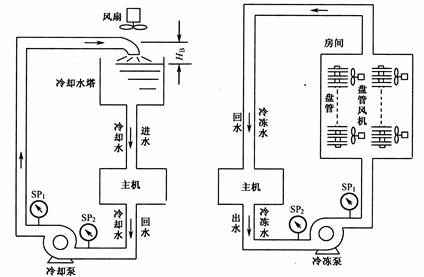 在中央空調(diào)系統(tǒng)中,有兩套循環(huán)。其中,冷凍水循環(huán)主要負(fù)責(zé)為公司和企業(yè)的各個(gè)房間降溫;冷卻水循環(huán)負(fù)責(zé)保證制冷機(jī)組的穩(wěn)定運(yùn)行。