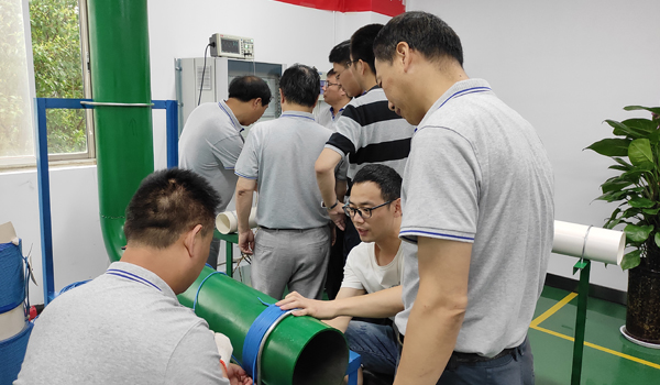 代理商在輕雨環(huán)保工作人員指導下嘗試管道纏繞