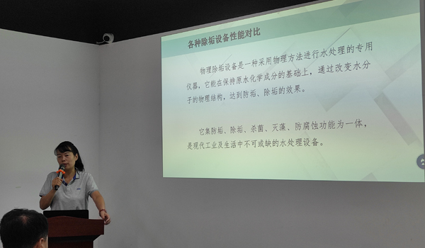 接下來,由輕雨環(huán)保商務(wù)部張總為大家分享物理除垢設(shè)備市場調(diào)研相關(guān)內(nèi)容,在分享的過程中,張總分析了市場上現(xiàn)存的各類型電子除垢儀優(yōu)缺點,并通過輕雨環(huán)保掃頻電子除垢儀的具體安裝案例,對輕雨環(huán)保掃頻電子除垢儀在安裝使用過程中的優(yōu)越性進行了證明。