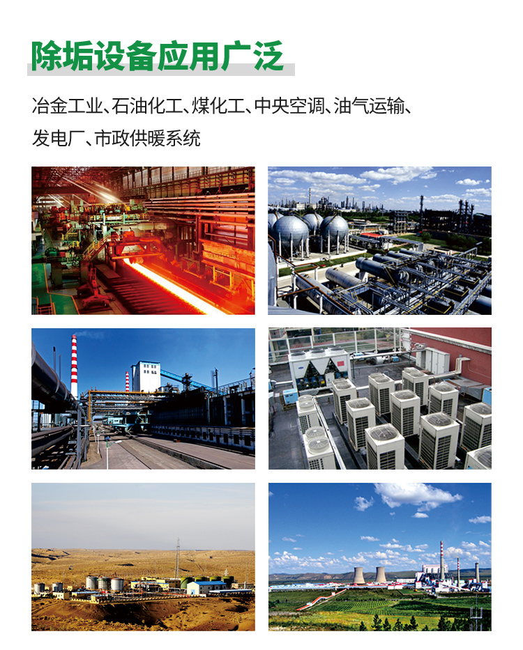 電子阻垢系統(tǒng)也是物理法的一種,該系統(tǒng)采用德國(guó)掃頻電子除垢技術(shù),是利用交變脈沖磁場(chǎng)進(jìn)行水處理的一項(xiàng)新技術(shù),即將掃頻技術(shù)應(yīng)用于水處理過(guò)程,并通過(guò)微電腦自動(dòng)實(shí)現(xiàn)變頻、移頻、掃頻控制。x該水處理技術(shù)是基于交變電磁場(chǎng)原理設(shè)計(jì),以電子技術(shù)為基礎(chǔ),將導(dǎo)線纏繞在要進(jìn)行處理的流體管道上形成螺線管,通過(guò)信號(hào)發(fā)生器產(chǎn)生一種極性、振幅和頻率高速變化的電流,該電流又在管道中產(chǎn)生快速變化的變頻磁場(chǎng),對(duì)水中的 Ca2+、Mg2+產(chǎn)生一種離子干擾作用,可以改變這些離子的電化學(xué)特性和物理特性,削弱Ca2+、Mg2+、 CO32-、SO42-之間的吸附能力,從而阻止這些離子之間結(jié)合成垢,隨著一個(gè)個(gè)脈沖的作用,通過(guò)(脈沖頻率,脈沖幅度和電流的速度)的水將產(chǎn)生突然變化,特別是靠近管壁,甚至強(qiáng)制瞬間逆轉(zhuǎn)。這樣的磁場(chǎng)感應(yīng)使得固體和管道線生物膜粘合強(qiáng)度變?nèi)?,其針狀晶體結(jié)構(gòu)光滑無(wú)粘性表面,呈松軟絮狀懸浮在介質(zhì)中隨介質(zhì)流動(dòng),避免了向器壁的沉積;同時(shí)經(jīng)過(guò)處理的水中碳酸鈣晶體通過(guò)磁場(chǎng)的水溶液中析出文石的數(shù)目增多,且尺寸較?。?0μm或更小的細(xì)小微粒),這些微粒不與其他微粒結(jié)合,也不能附著在管壁或換熱器表面,達(dá)到防垢、除垢的目的。